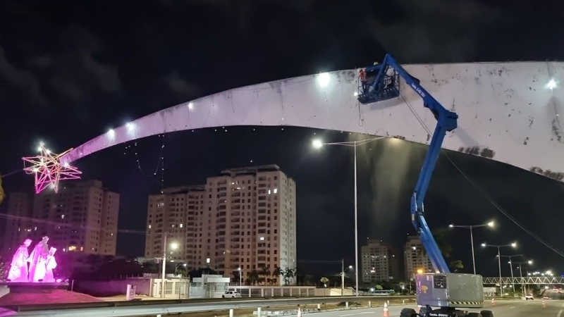 Com a ajuda de guindastes e equipamentos de precisão, os profissionais estão tratando e restaurando as armaduras metálicas que foram afetadas pela corrosão. Está previsto que o trabalho seja concluído em até 30 dias, devolvendo ao Pórtico um visual renovado e mais seguro.