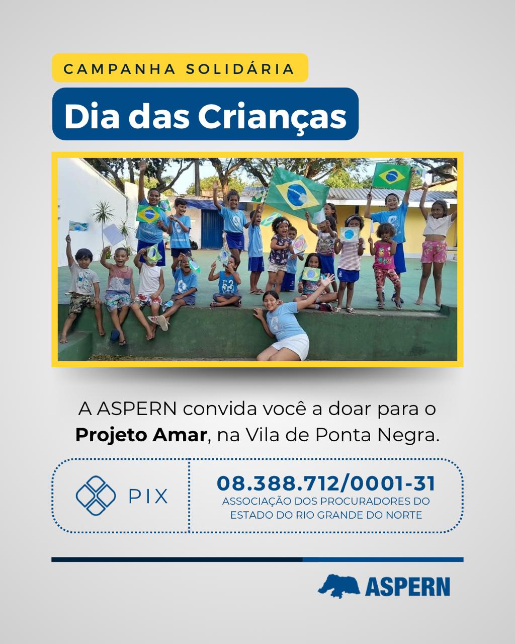 Em celebração ao Dia das Crianças, a Associação dos Procuradores do Estado do Rio Grande do Norte (ASPERN) deu início a uma nova campanha de solidariedade voltada às crianças atendidas pelo Amar Antes Projeto, na comunidade da Vila de Ponta Negra, em Natal.