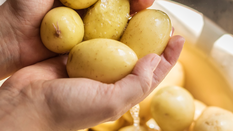 Descascar batatas após o cozimento facilita o processo por conta do amolecimento do vegetal; o risco está em lidar com o vegetal logo após o cozimento, para aproveitar a fase mais maleável, pois é fácil se queimar e atrasar o processo.