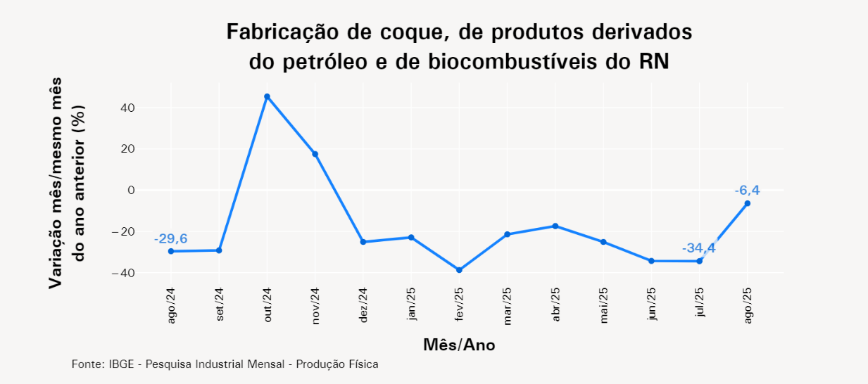 A produção industrial do Rio Grande do Norte avançou 3,3% em agosto de 2025