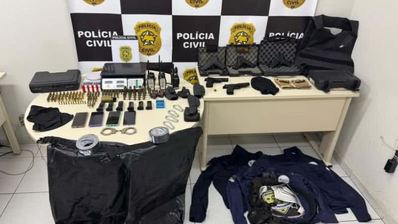 Além disso, os agentes também encontraram uma balança de precisão, acessórios de armamento, uniformes de empresas do ramo da segurança privada e algemas. Ainda durante as buscas, os policiais ainda localizaram sacolas semelhantes às usadas para o embalo de droga e equipamentos com mosquetões e fitas.
